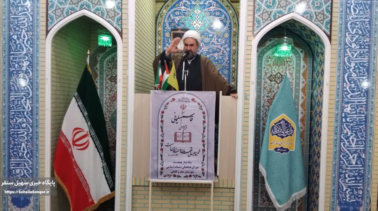 امام جمعه شهرستان سنقر ضمن گرامیداشت یاد و خاطره حاج قاسم سلیمانی افزود: حاج قاسم سلیمانی نه پیغمبر بود نه امام اما وقتی نام مقدس این سردار آورده میشد بدن دشمنان اسلام به لرزه میافتاد افرادی که به این جایگاه و عظمت میرسند این نتیجه رعایت تقوا است این یک امر مادی نیست نامش در دل نه تنها شیعیان نه تنها مسلمانان بلکه در دل آزادگان نور امید و شوق ایجاد میکند