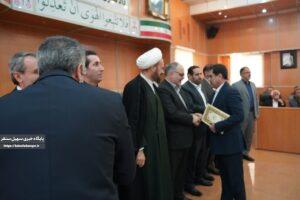 در این مراسم، صادق تاری وردی، رئیس دادگستری شهرستان و حامد صادقی سطری دادستان شهرستان، به پاس مدیریت مؤثر، برنامهریزی کارآمد و تعامل سازنده با مجموعه قضایی استان، موفق به کسب رتبه اول استانی در تحقق شاخصهای مدل تعالی شدند.