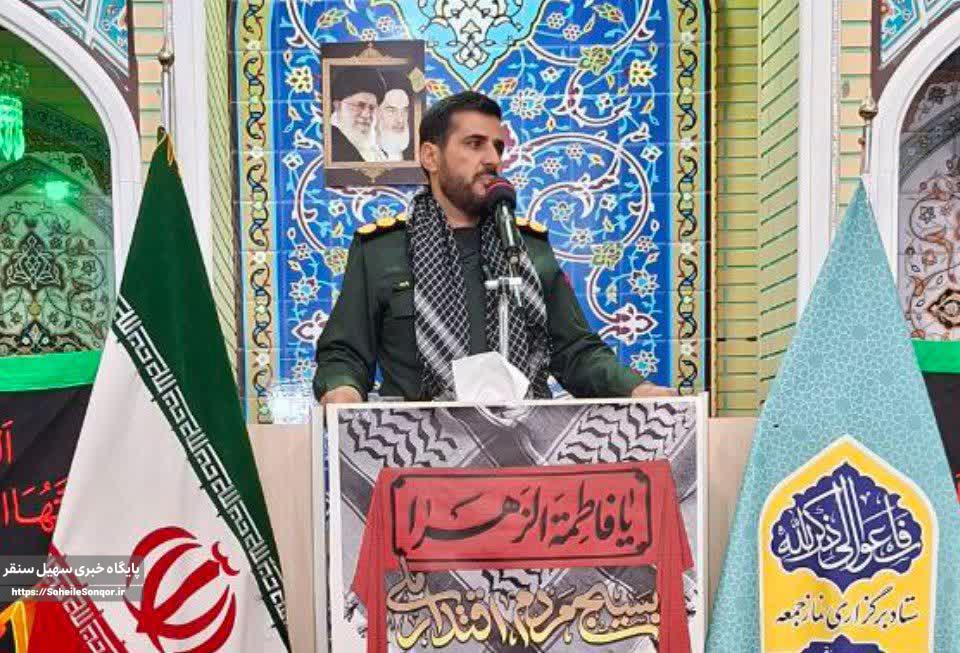 به گزارش خبرنگار تحلیلی_سیاسی سهیل سنقر؛ سرهنگ پاسدار شهرام یاری، فرمانده سپاه ناحیه سنقر، در سخنرانی پیش از خطبههای نماز جمعه این هفته، ضمن گرامیداشت ایام شهادت حضرت فاطمه(س) و تبریک هفته بسیج، به تشریح نقش تاریخی و عملکرد یکساله بسیج در شهرستان سنقر و کلیایی پرداخت.