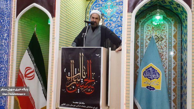 خطیب نمازجمعه شهرستان به نقل از حدیث نبوی (ص )” اِنَّ الحسینَ مِصباحُ الهُدی و سَفینهُ النَجاه (همانا حسین چراغ هدایت و کشتی نجات است)” خاطرنشان کرد: خود،بچهها ونوهها ونسلمان را سوار بر این کشتی نجات کنیم تا از تلاطم طوفانهای آخرالزمان محفوظ بمانیم